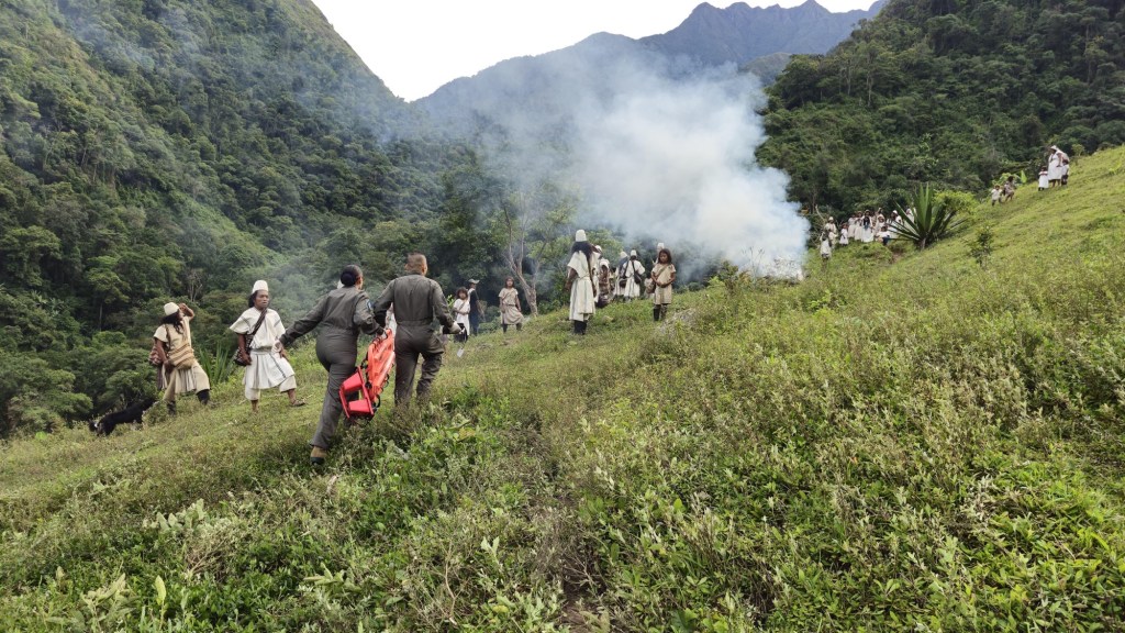 Fue entonces cuando el rugido del helicóptero rompió el silencio sagrado de la Sierra. Un Bell-212 de la Fuerza Aeroespacial Colombiana, cargado de esperanza y protocolos médicos, descendió como un pájaro metálico en medio de la selva. No era la primera vez que lo hacía, pero cada vez era única. Como cada vida.